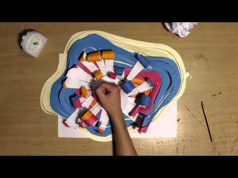 L'histoire se déroule a Chicago en 1900. J'ai trouvé une photographie en noir et blanc de la maison du couple Cheney. Elle a été le point de départ du projet. J'ai accentué le contraste de la photo, ce qui a fait ressortir des formes abstraites que j'ai disposé de façon à donner l'impression d'une explosion, c'est l'effondrement de la maison.